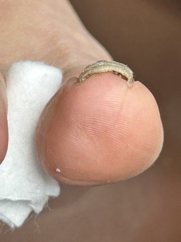 一時的に痛みは引くものの、またすぐに爪が食い込んでくる繰り返し。「もう自分ではどうにもできないし、爪の形がどんどん細くなっている気がする」と不安になり、当院のホームページを見つけてご予約いただきました。