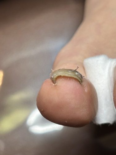 では、実際の爪の変化をご覧ください。 皮膚に深く食い込んでいた爪が、装具をかけた直後からどのように変化したでしょうか。